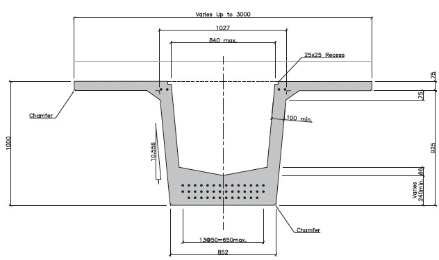 Typically 150mm thick internal diaphragms and solid end blocks are necessary